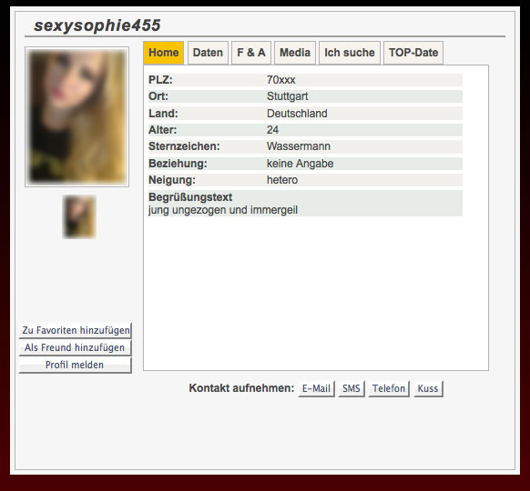 Auch die Schaltflächen, die Suchfunktion und der Profilbereich erinnern doch sehr an Zeiten, als Windows 95 noch aktuell war. Die Seite ist zwar übersichtlich und funktioniert technisch einwandfrei, das müssen wir Affaire.com zugestehen, mehr aber auch nicht.
