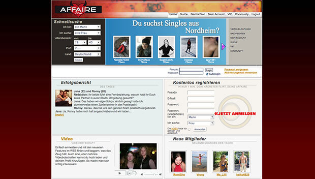 Affaire.com gibt es schon seit 1999 und ist damit einer der ältesten Erotik-Dating Anbietern Überhaupt. Dafür, dass sich das Portal in so einem umkämpften Markt schon so lange behaupten kann, verdient es Respekt. In vielen anderen Punkten waren wir allerdings weniger begeistert. Affaire.com hat zwar viele Mitglieder, etwa 1,8 Millionen an der Zahl. Viele davon sind allerdings Fakes, Animateure, etc. Die Erfolgsaussichten schätzen wir daher nicht sehr hoch ein. Wir haben uns schwer getan, echte Mitglieder zu finden und mit diesen in Kontakt zu treten. Es ist möglich, erfordert aber einiges an Zeit und Geduld. Umso schneller geht dafür die Anmeldung. Diese geht in 2 kurzen Schritten und ist innerhalb weniger Sekunden erledigt.