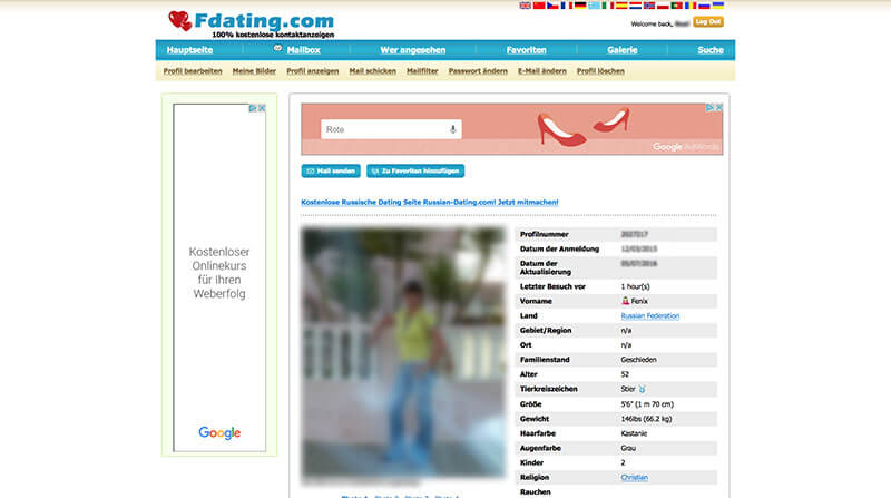 Bei FDating haben Sie die Möglichkeit, kostenlos Kontaktanzeigen aufzugeben. Die Nutzung des Portals ist komplett kostenlos. Die User kommen aus der ganzen Welt – die Damen sind zum Großteil aus Russland und der Ukraine.