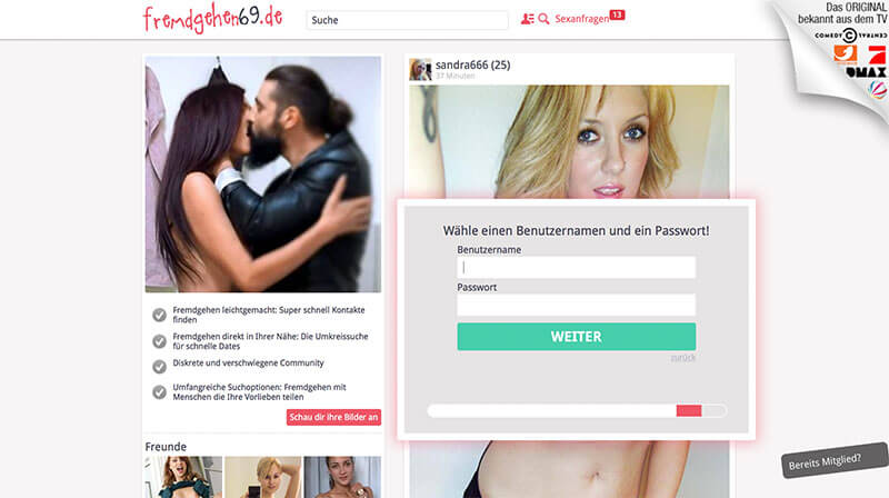 Schätzungsweise 100.000 Mitglieder inkl. Animateuren sind beim Seitensprung-Portal Fremdgehen69 registriert. Bekannt ist dieses Portal aus den nächtlichen Werbepausen bestimmter privater TV-Sender. Die Erfolgsaussichten sind unserer Meinung nach eher mau, da es mehr darum geht, entertaint zu werden anstatt reale Kontakte zu bekommen. Die Anmeldung macht keine Probleme, nach wenigen Klicks gehören Sie zu den „Fremdgängern“.