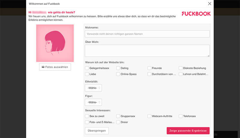 Fuckbook führt Sie nun durch die Profilerstellung:
