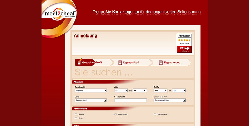 meet2cheat ist die älteste und erfahrenste deutsche Seitensprung Agentur im Internet. Seit 1998 finden hier Seitenspringer diskret Gleichgesinnte. Das Unternehmen hat seinen Sitz im Stuttgarter Raum und gehört zu den ganz wenigen wirklich seriösen Anbietern der Branche. Häufig haben Portale aus dem Casual Dating Bereich eine ausländische Anschrift, was nicht grundsätzlich schlecht sein muss, aber doch ein gewisses Misstrauen aufkommen lässt. Gerade bei Seitensprung Portalen bestätigt sich dieses Misstrauen bei etwas näherem Hinsehen allzu oft. Nicht so bei meet2cheat. Diese Agentur ist eine der wenigen, seriösen Ausnahmen.