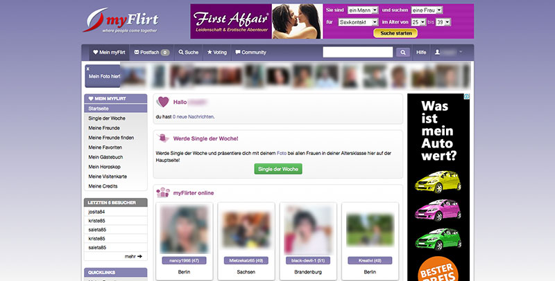 Wer parallel noch bei dem Seitensprung Portal First Affair angemeldet ist, dem werden die zahlreichen Parallelen auffallen. Beide Seiten stammen nämlich ursprünglich aus dem selben Hause. Das ist zwar nicht unbedingt ein Vorteil, da die Benutzeroberfläche eine der wenigen Schwächen von First Affair ist, aber ganz verteufeln möchten wir das System auch nicht. Was die Menüführung und auch die Gestaltung angeht, haben beide Portale ihre besten Jahre schon eine ganze Weile hinter sich. Darüber hinaus ist die myFlirt aber ganz übersichtlich, nach einer kleinen Eingewöhnungsphase muss man einschränkenderweise sagen. Aber auch hier muss man wieder sagen: Für eine kostenlose Singlebörse ist das in Ordnung.
